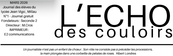Par admin jean-vigo, publié le mardi 17 mars 2026 17:07 - Mis à jour le mardi 17 mars 2026 17:12Le premier numéro de "L'ECHO des couloirs" réalisé par la classe de 2nde 2 vient de paraître. -
