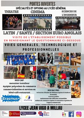 Par admin jean-vigo, publié le mercredi 12 mars 2025 16:56 - Mis à jour le jeudi 2 avril 2026 13:44Pour les familles qui n'ont pas pu venir à la JPO le 14 février, le lycée Jean VIGO vous propose une visite le mardi 12 mai de 17h à 18h30 sur Inscription. Merci de compléter le formulaire pour être sur la liste des visiteurs. -
