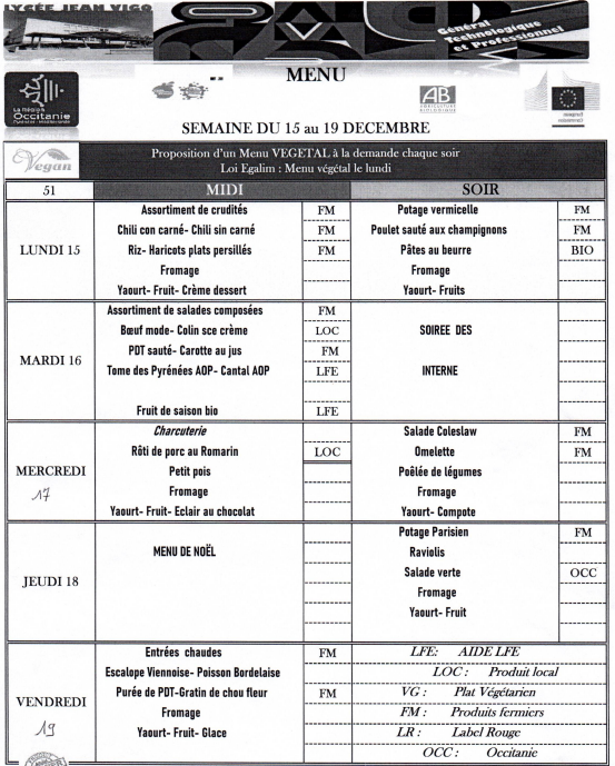 Chaque semaine, vous pouvez consulter les menus du self...